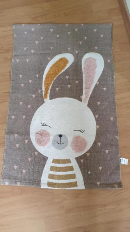 kleiner Kinderteppich (Maße 60×100 cm) mit Häschen-Motiv aus 100 % Baumwolle zu verschenken bei Abholung.